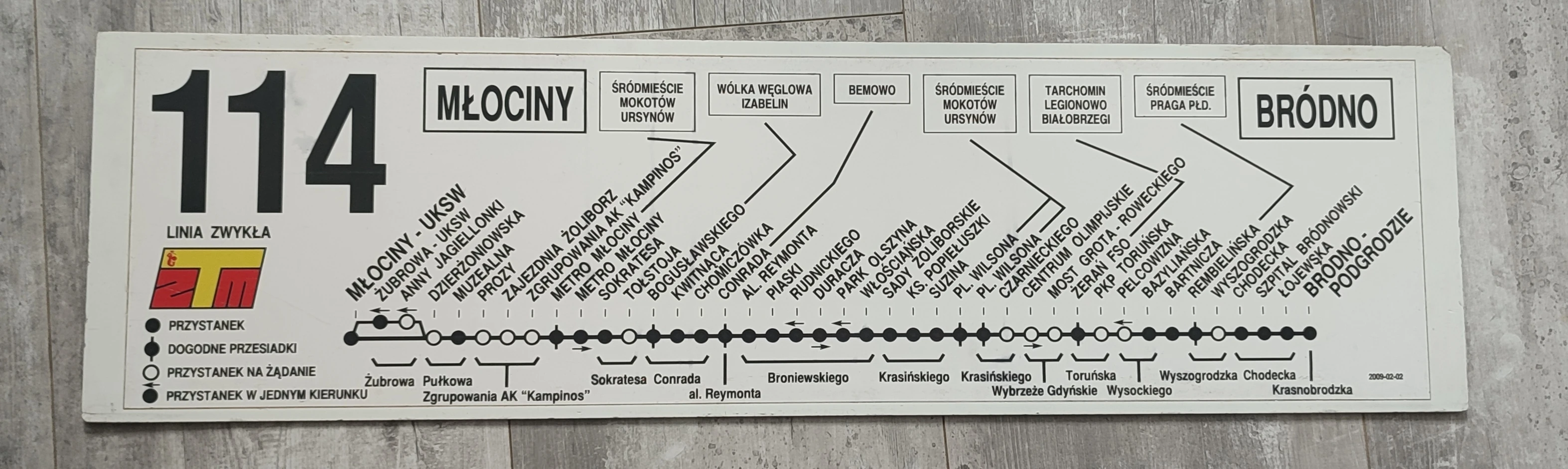114 – linia autobusowa zwykła (rozkład jazdy), która kursuje na trasie z Młocin-UKSW na Bródno-Podgrodzie z kursami skróconymi z Młocin-UKSW na Metro Młociny. Linię obsługują zajezdnie autobusowe Stalowa i Płochocińska oraz ajent ReloBus.