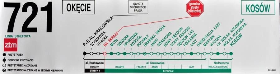 P+R Aleja Krakowska – Al. Krakowska – Raszyn: al. Krakowska – Falenty: al. Krakowska – Janki: al. Krakowska – Nowy Sękocin: al. Krakowska – Stary Sękocin: al. Krakowska – Sękocin Las: al. Krakowska – Łazy: al. Krakowska – Marysin: al. Krakowska – Wólka Kosowska: al. Krakowska – Nadrzeczna – Kosów: Nadrzeczna – Kosów