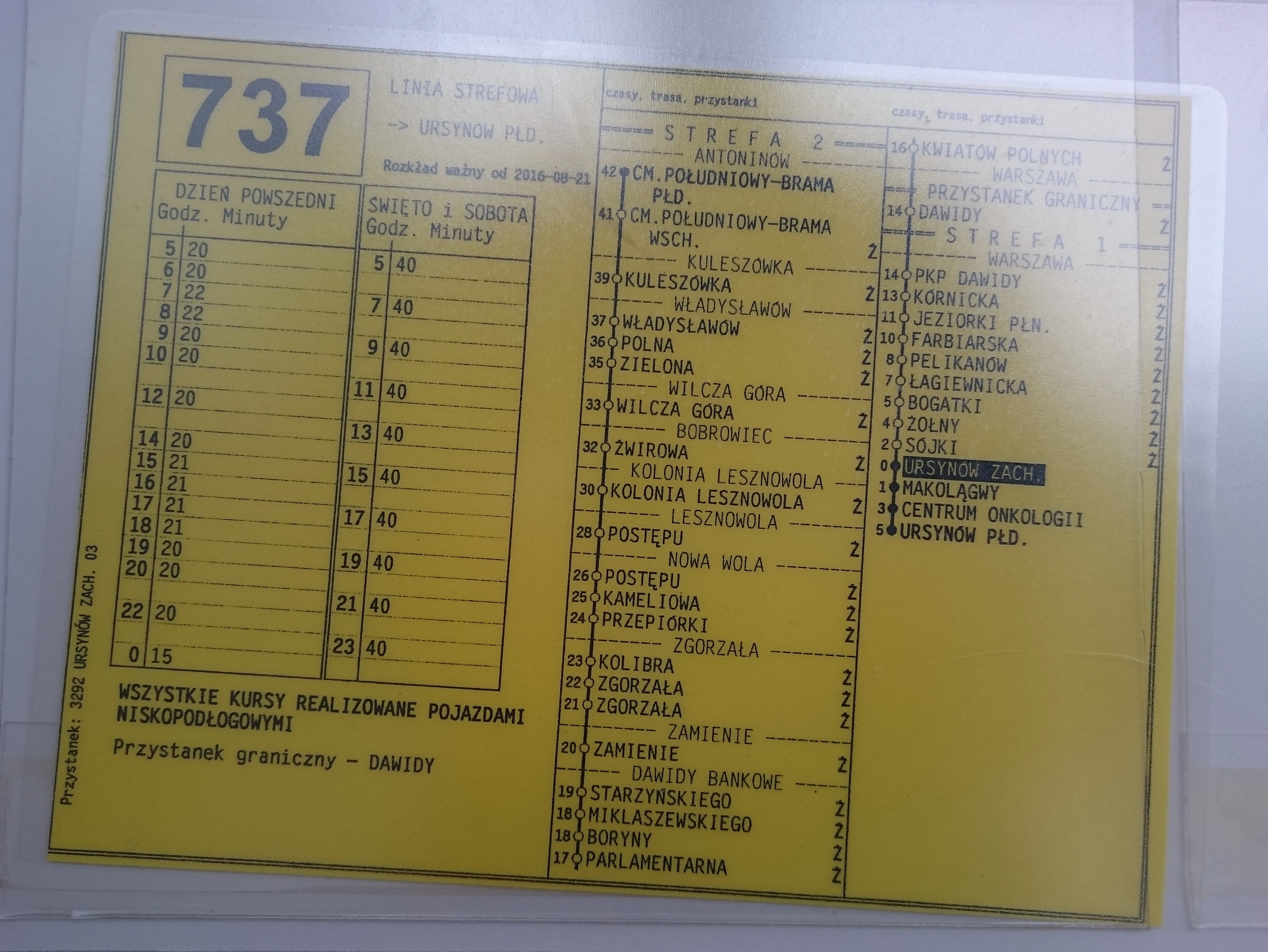 Pierwszy i ostatni kurs: ... – Władysławów: Wojska Polskiego – Władysławów