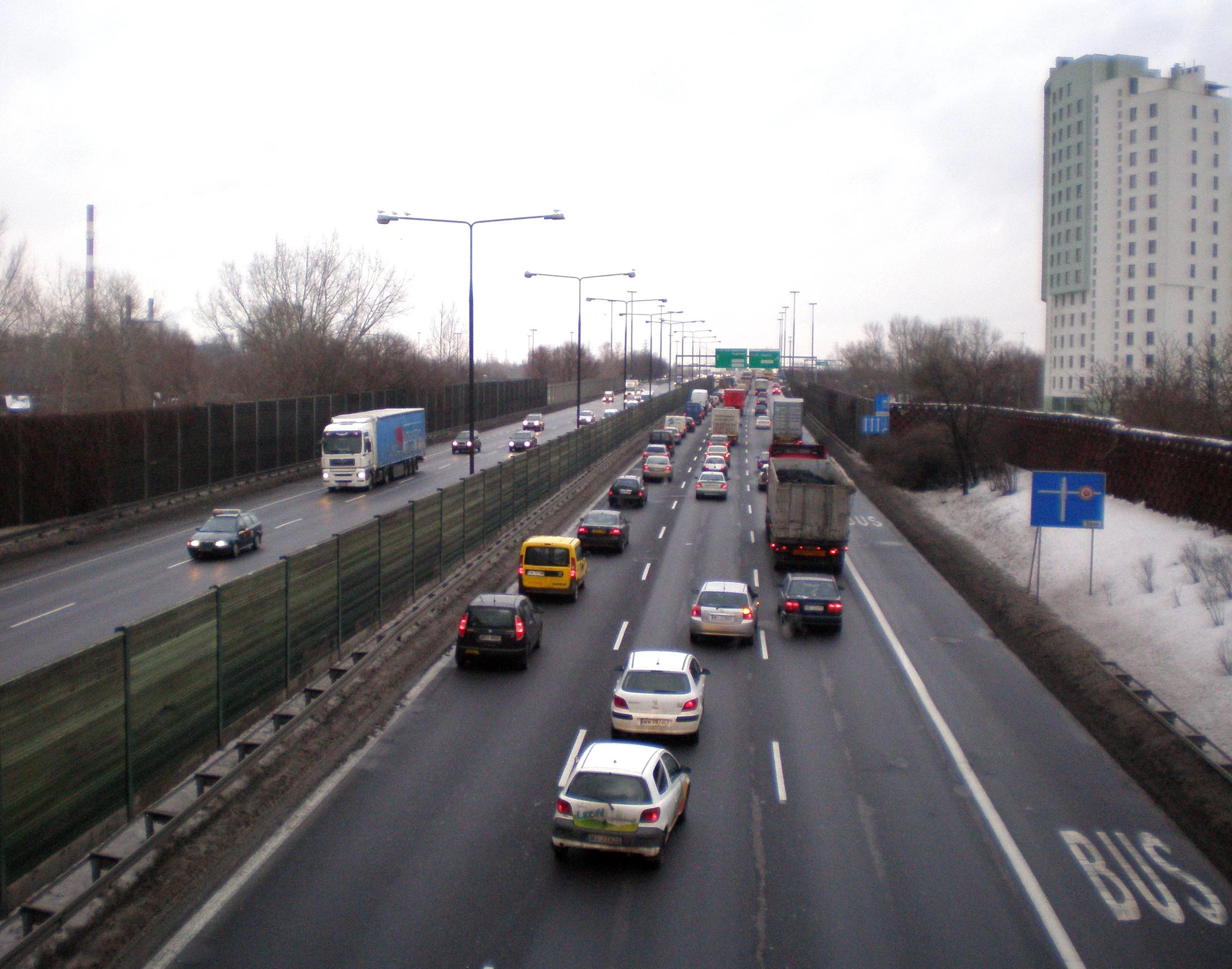 Aleja Armii Krajowej na wysokości os. Ruda, po prawej buspas