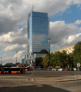 Budynek ma 120 metrów wysokości (wraz z iglicą) z 28 kondygnacjami. Dolne piętra zajmują punkty usługowe, wyżej mieszczą się biura. W Błękitnym Wieżowcu swoje siedziby mają firmy, takie jak: Pekao S.A., PKO BP S.A., Agencja Nieruchomości Rolnych, czy Peugeot Polska, posiadający charakterystyczny kaseton na dachu wieżowca.