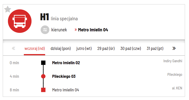 Rozkład linii H1-godziny odjazdów z przystanku Metro Imielin (2025)