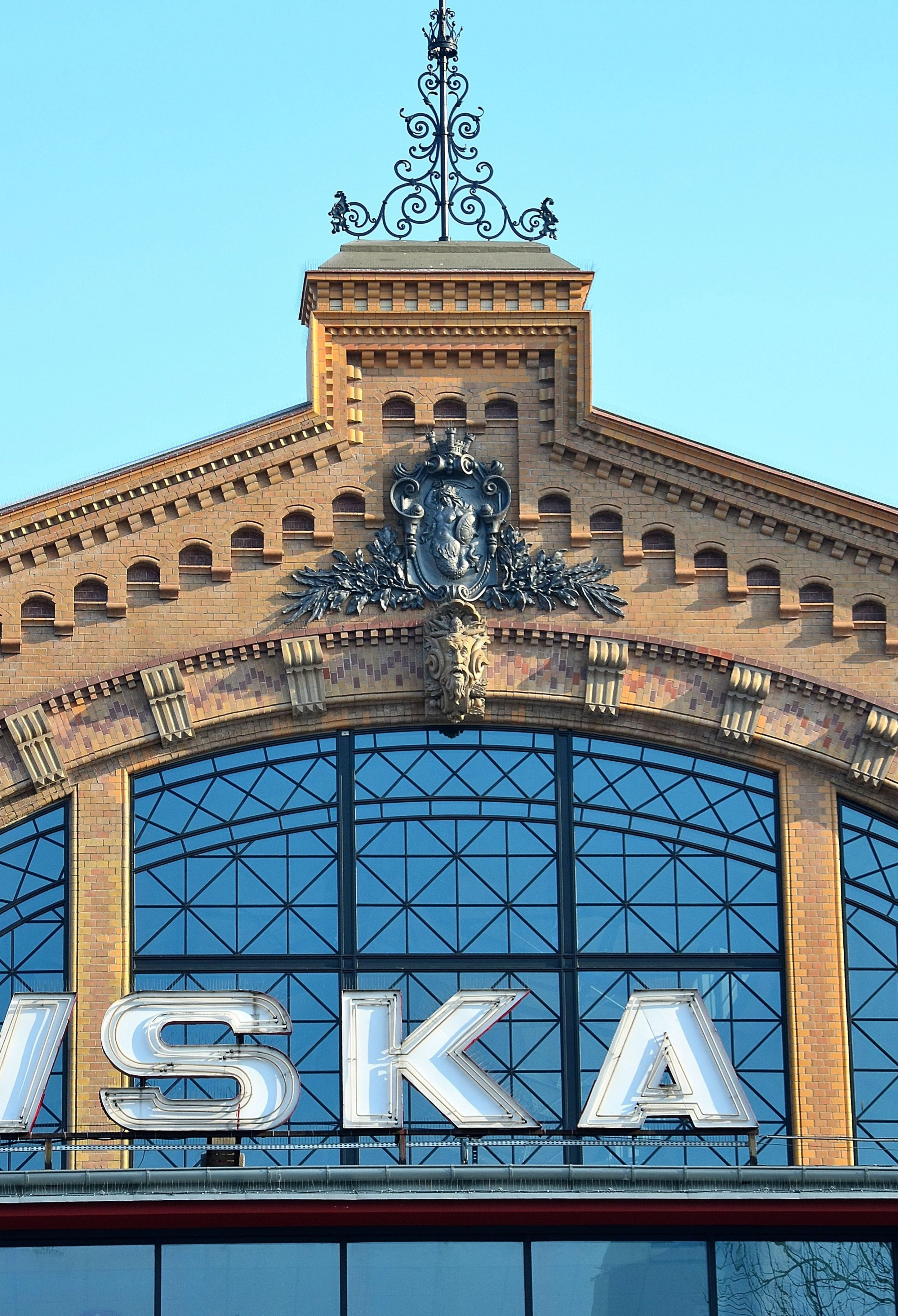 - Syrenka na fasadzie Hali Mirowskiej