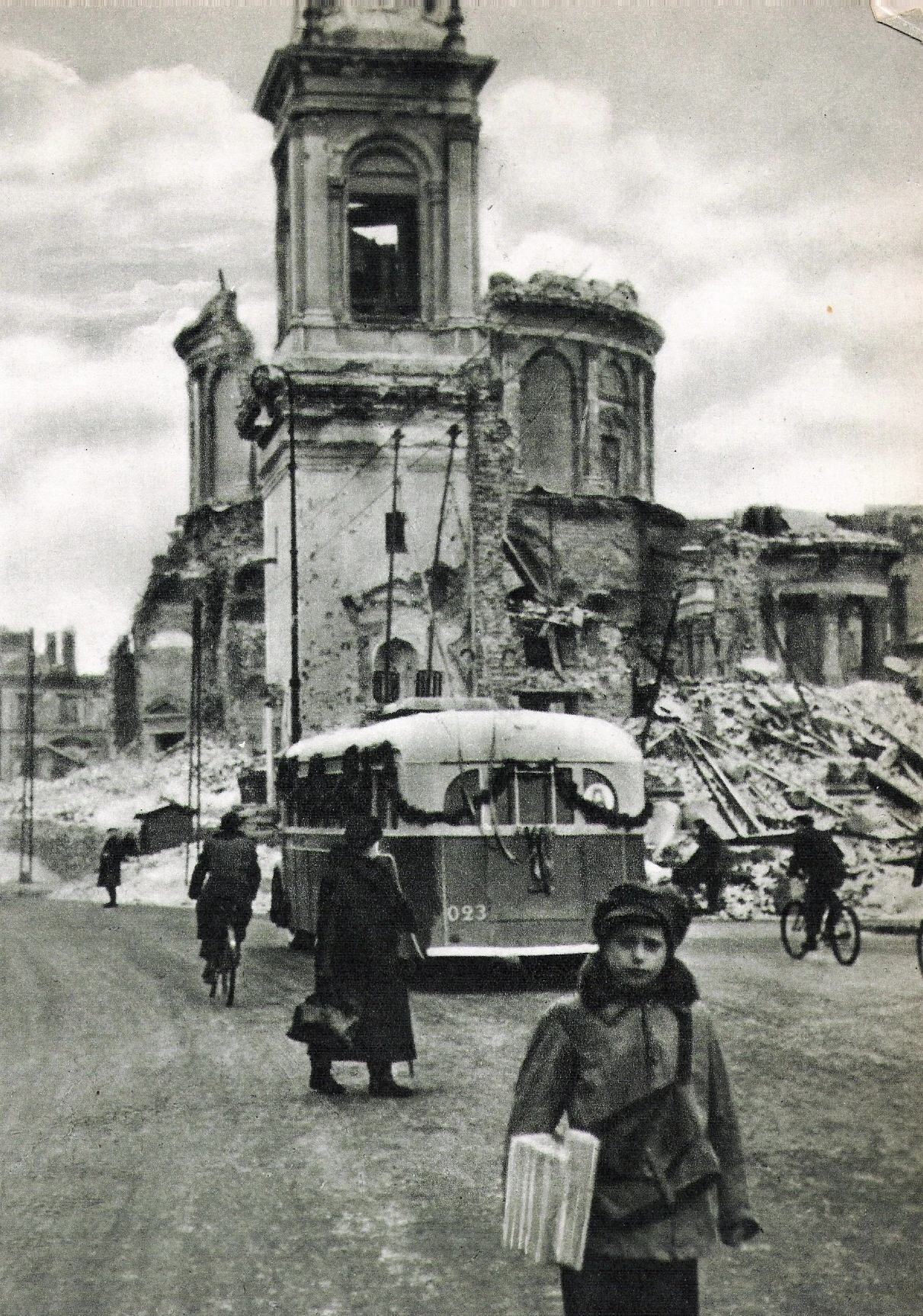 Zniszczony kościół św. Aleksandra w 1945 roku