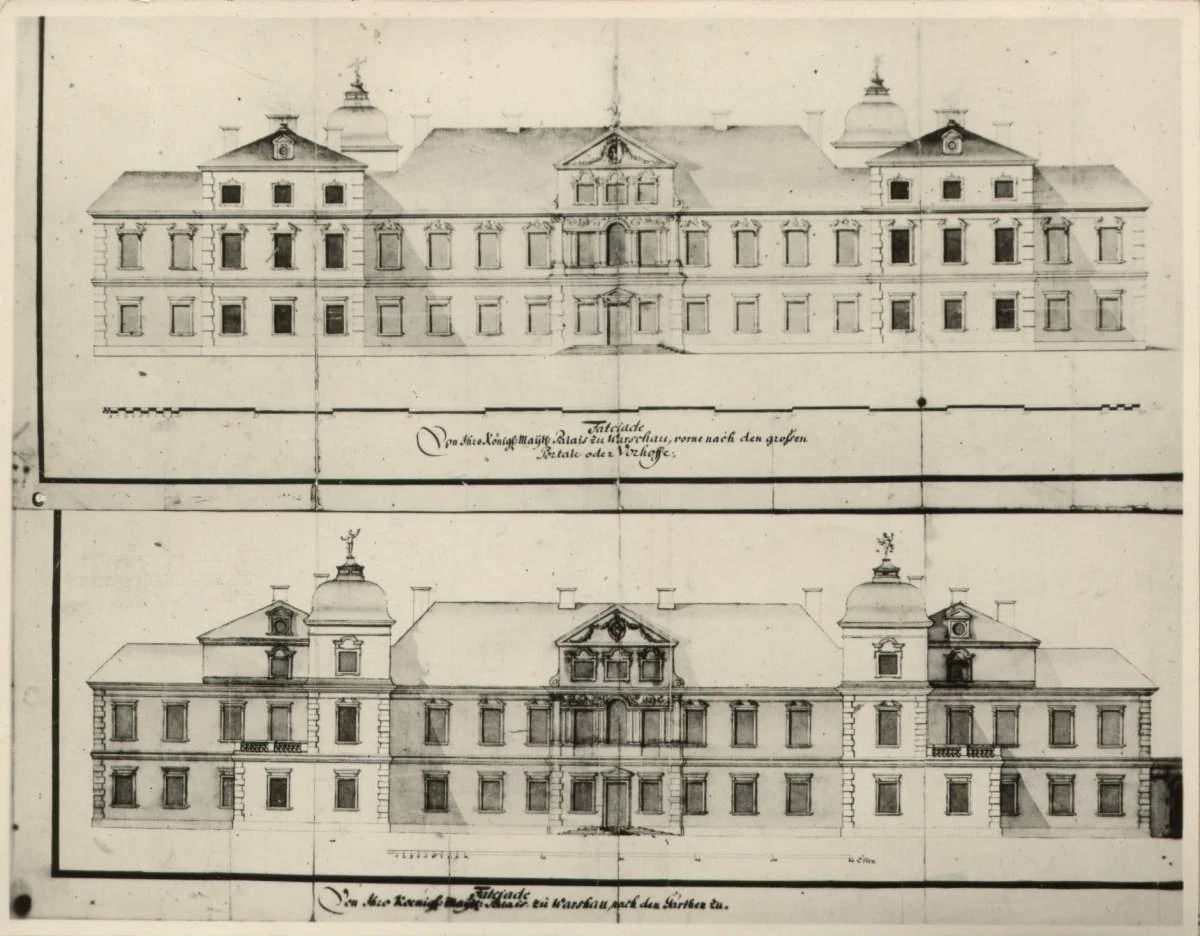 W 1713 roku pałac wraz z dwudziestoma trzema okolicznymi posiadłościami zakupił król August II Mocny i za sprawą sprowadzonych z Saksonii architektów, Joachima Daniela Jaucha i Karola Fryderyka Pöppelmanna, rozpoczął budowę nowego pałacu – rezydencji królewskiej, będącej częścią większego założenia, nazwanego Osią Saską. Choć po śmierci Augusta II pałac uległ częściowej dewastacji, to August III doprowadził dzieło do końca w 1748 roku. Korpus główny rozszerzono o załamane na końcach skrzydła oraz wzniesiono długie oficyny, tworząc przed pałacem rozległy dziedziniec paradny, na jego tyłach utworzono także ogród, który od 1727 roku był dostępny dla odwiedzających. Wejście do niego prowadziło przez jedną z bocznych bram pałacu. Po przejęciu korony przez Stanisława Augusta Poniatowskiego pałac pozostał w rękach saskich elektorów, ale zaczął podupadać. Wynajmowany był instytucjom rządowym oraz na prywatne mieszkania.