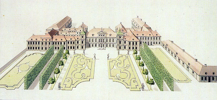 Pałac Morsztynów w XVIII wieku od strony Placu Piłsudskiego i Ogrodu Saskiego