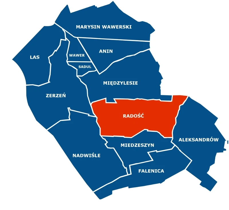 Aleksandrów • Anin • Falenica • Las • Marysin Wawerski • Miedzeszyn • Międzylesie • Nadwiśle • Radość • Sadul • Wawer • Zerzeń |