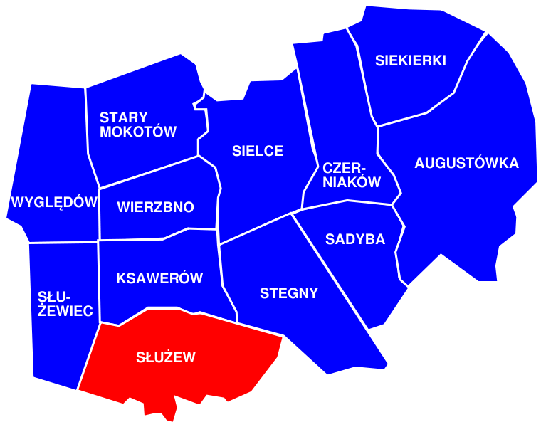 Górny Mokotów: Ksawerów • Służew • Służewiec • Stary Mokotów • Wierzbno • Wyględów |
