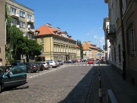 Ulica zaczyna się skrzyżowaniem z Nowomiejską i Freta. Biegnąc na zachód, krzyżuje się kolejno z ulicami: Kilińskiego, Miodową, placem Krasińskich, Barokową, Bielańską i Bohaterów Getta. Kończy się ślepo w okolicach Arsenału, na wprost ulicy Andersa.