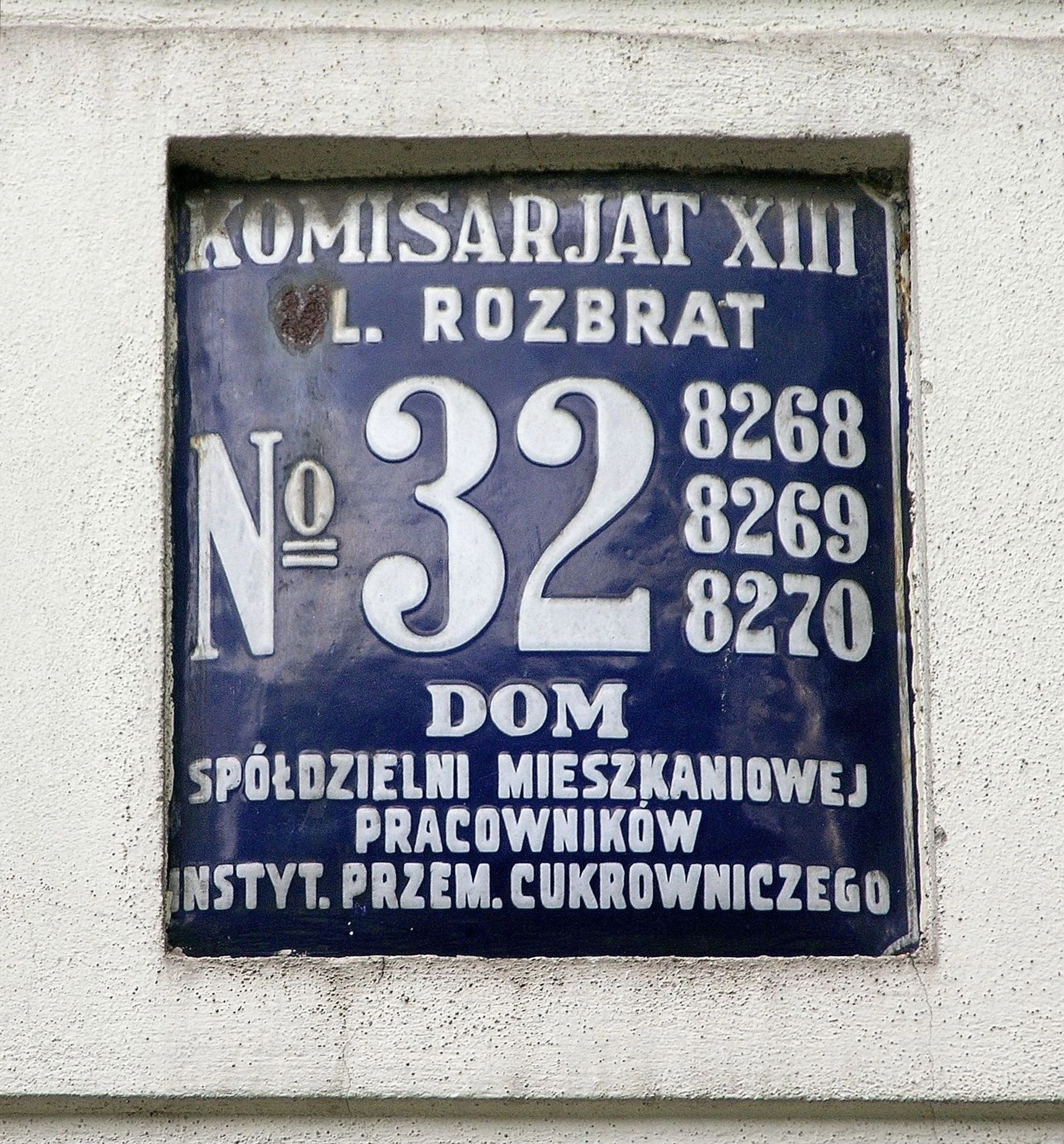 Przedwojenna tablica adresowa na kamienicy przy ul. Rozbrat 32