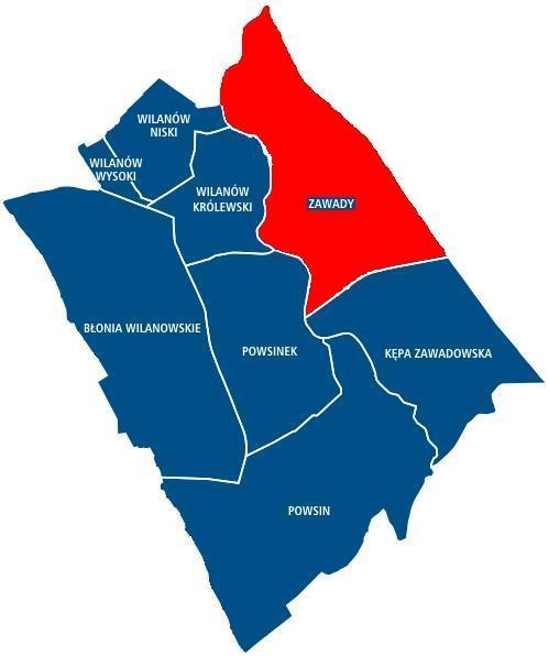 Błonia Wilanowskie • Kępa Zawadowska • Powsin • Powsinek • Wilanów Królewski • Wilanów Niski • Wilanów Wysoki • Zawady |