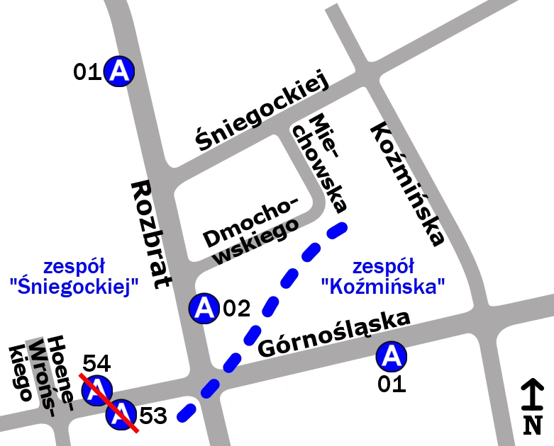 Schemat rozmieszczenia przystanków w zespołach „Koźmińska” i „Śniegockiej”