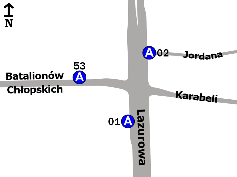 Schemat rozmieszczenia przystanków w zespole „Batalionów Chłopskich”