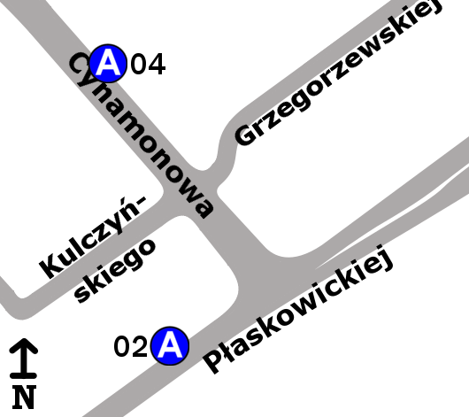 Schemat rozmieszczenia przystanków w zespole „Cynamonowa”