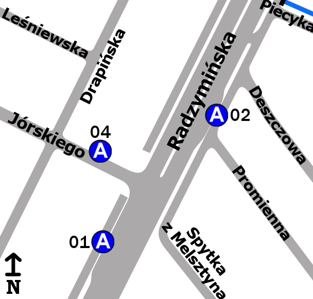 Schemat rozmieszczenia przystanków w zespole „Jórskiego”