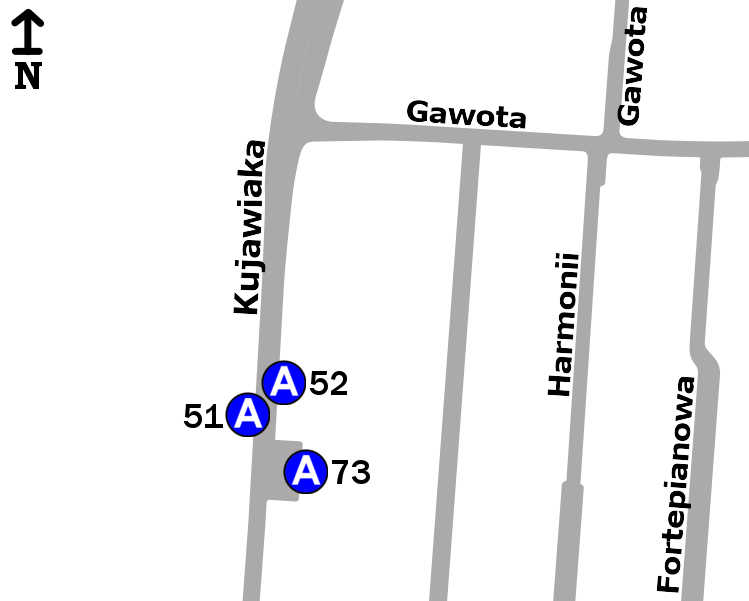 Schemat rozmieszczenia przystanków w zespole „Kujawiaka”