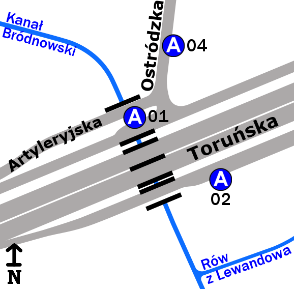Schemat rozmieszczenia przystanków w zespole „Ostródzka”