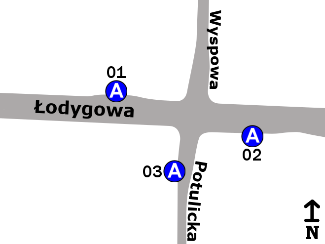 Schemat rozmieszczenia przystanków w zespole „Potulicka”